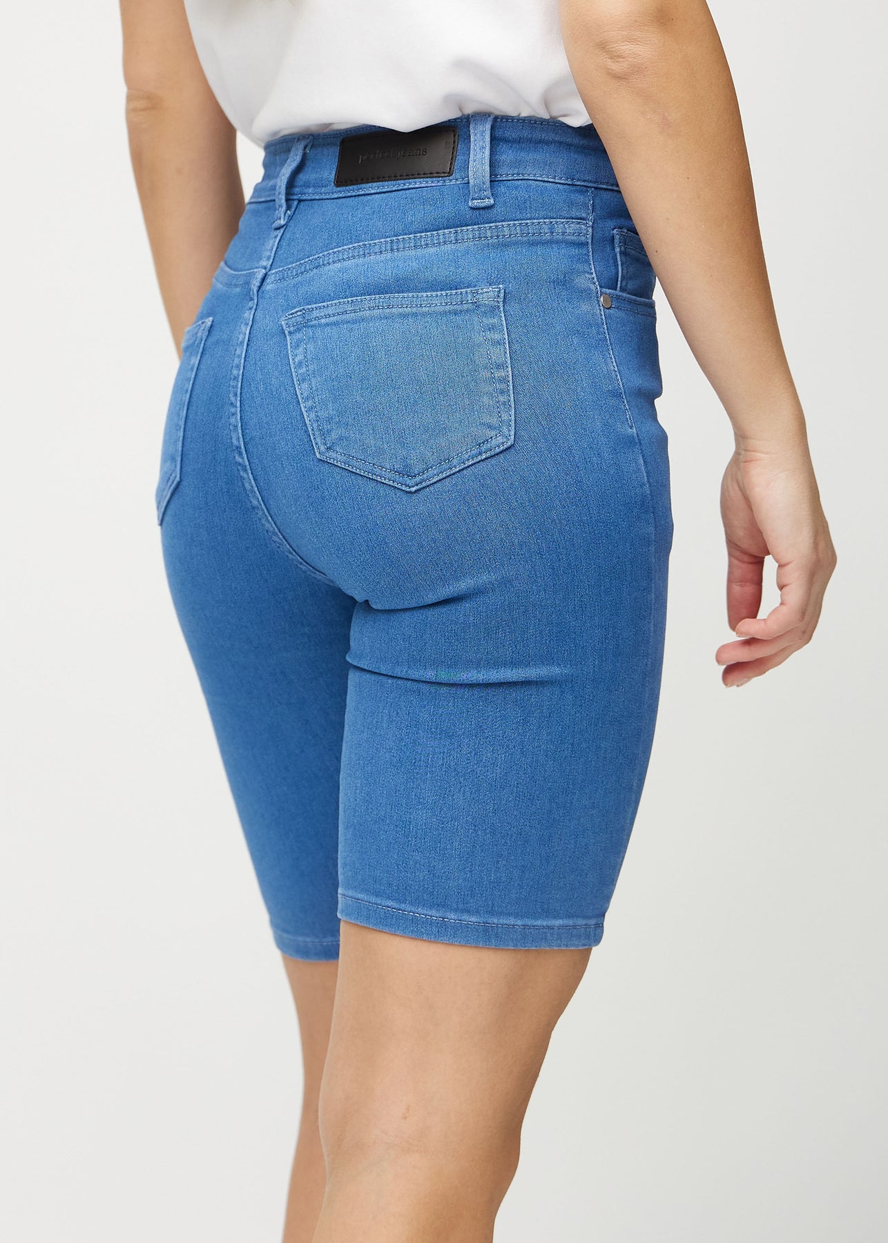 Perfect Shorts - Middle - Skinny - Geraniums are the perfect shorts for you if you are looking for a pair of comfortable shorts in a beautiful blue color. Our shorts are developed with a special weave, making them comfortable and stretchy, providing you with super comfort throughout the day. Our blue middle shorts are high-waisted and end just above the knee. It is our most form-fitting shorts design, featuring two deep pockets both in the front and back. The classic blue shorts match any outfit and are a must-have in any wardrobe.