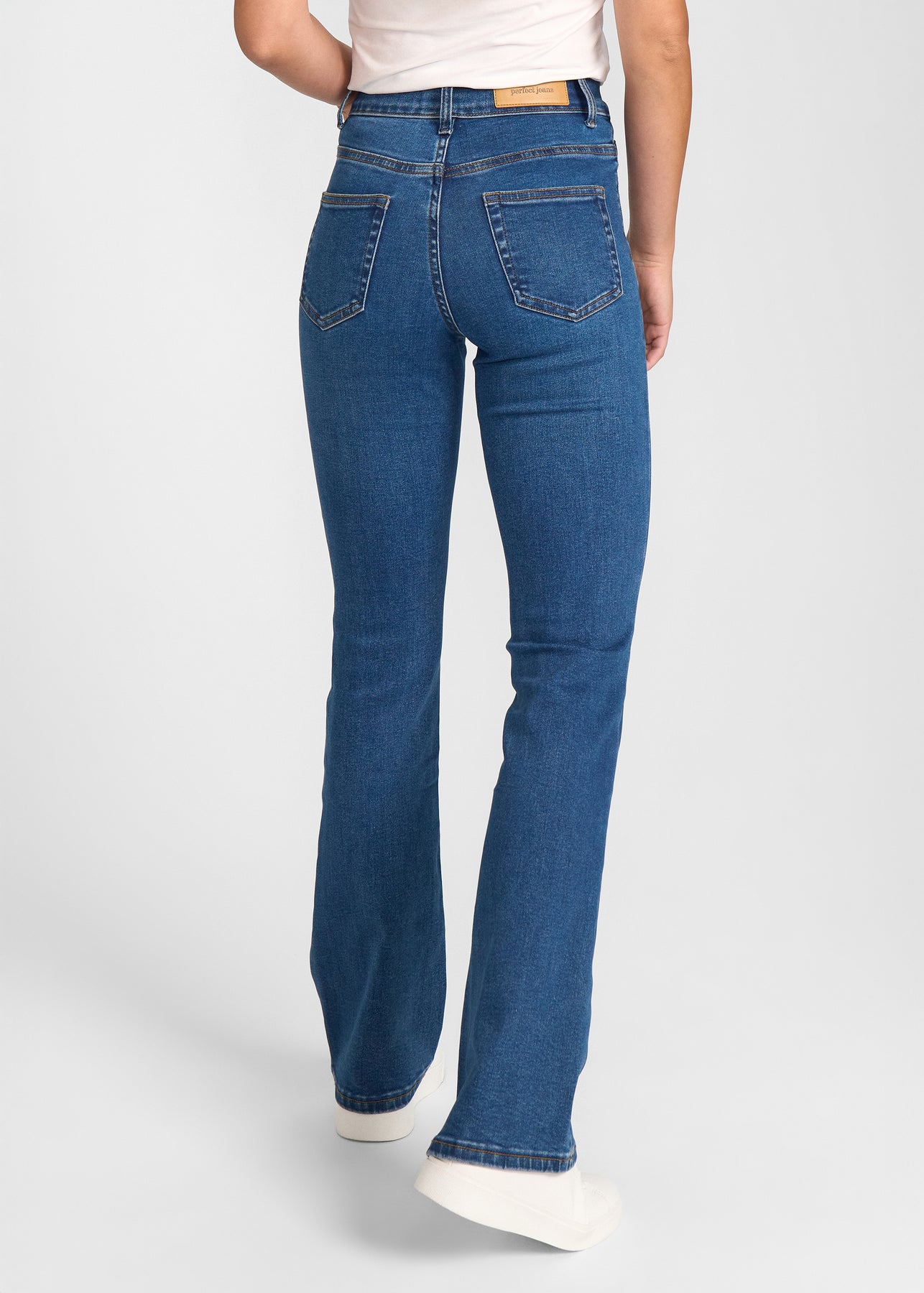 Perfect Jeans - Bootcut - Oceans are dark blue jeans that offer a clean and sophisticated denim look. The jeans shape to your body with a close fit around the hips and thighs and feature the signature flare from the knee down. The material is soft, flexible, and full of stretch, providing maximum comfort throughout the day without losing its shape or colour over time. These bootcut jeans are high-waisted and have pockets both at the front and back. A timeless choice for those who love a classic denim look.
